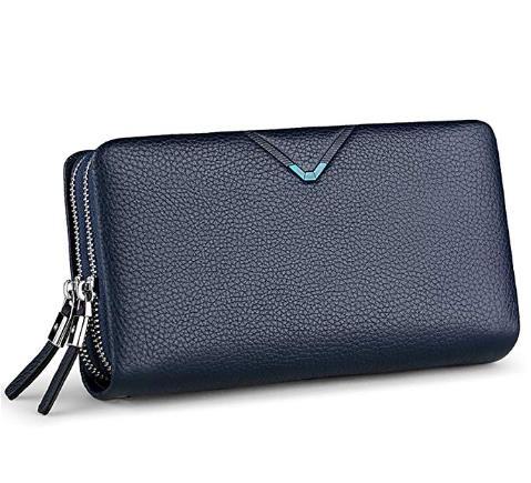 POLO Mens Raccoglitore Del Cuoio Genuino Della Cinghia del Sacchetto di Frizione con Doppia Cerniera